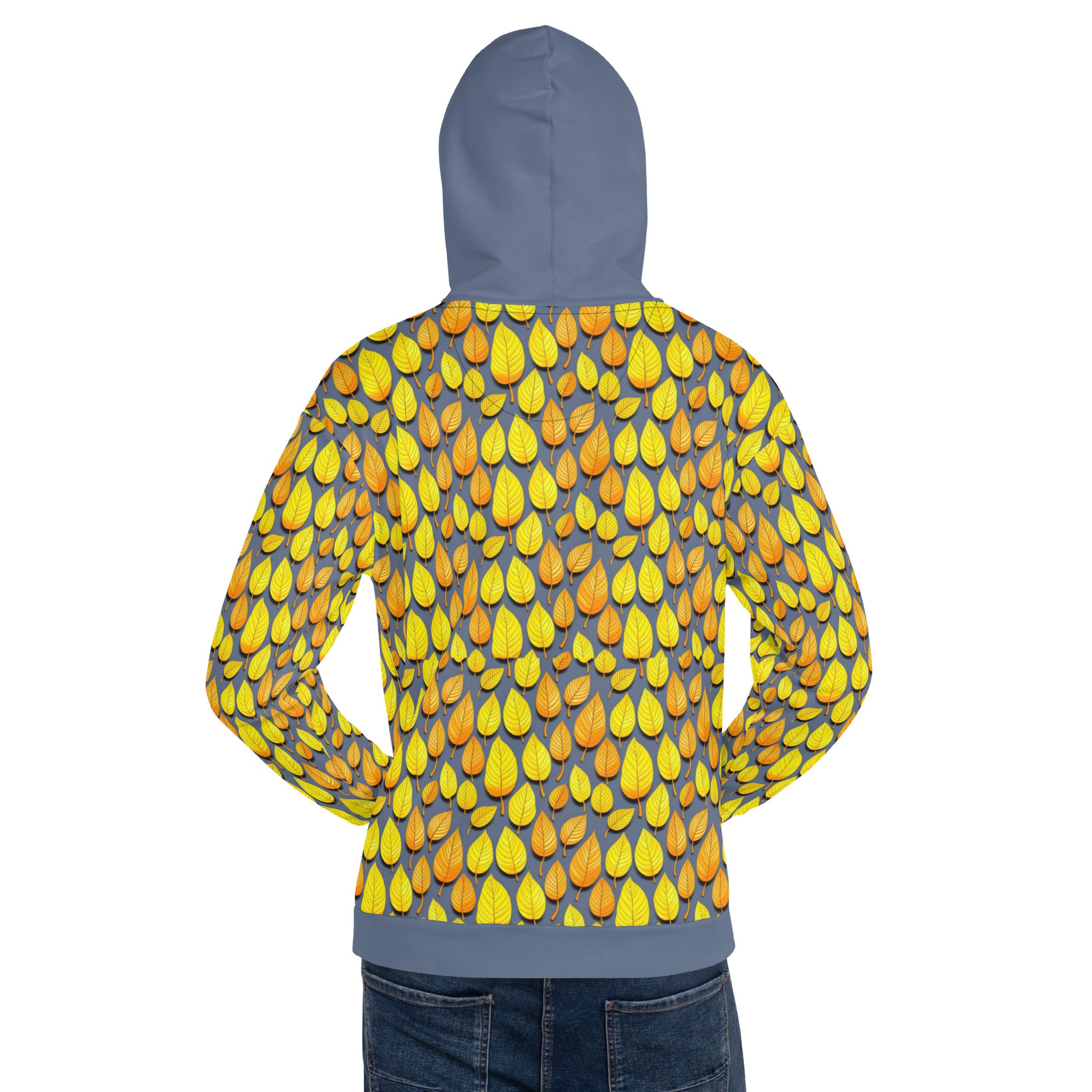 Introducing the "Autumn Aspen LL (Little Leaf)" hoodie, a hilariously vibrant fusion of cozy comfort and Mother Nature's color palette, where yellow and orange leaves dance all over, ensuring you blend in with the foliage (sorry, leaf rakes) and stand out in a sea of pumpkin spice lattes with leaf-peeping chic and a side of whimsy! This comfy unisex hoodie has a soft outside with a vibrant print and an even softer brushed fleece inside. The hoodie has a relaxed fit, and it’s perfect for wrapping yourself into on a chilly evening.