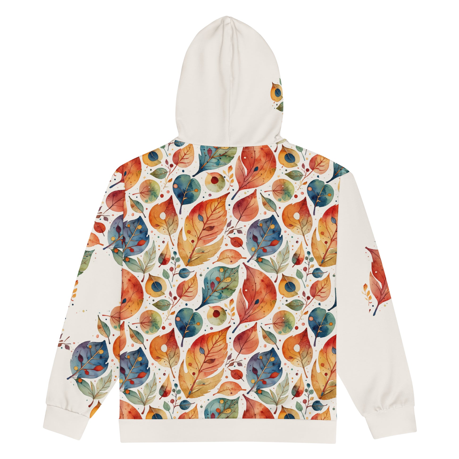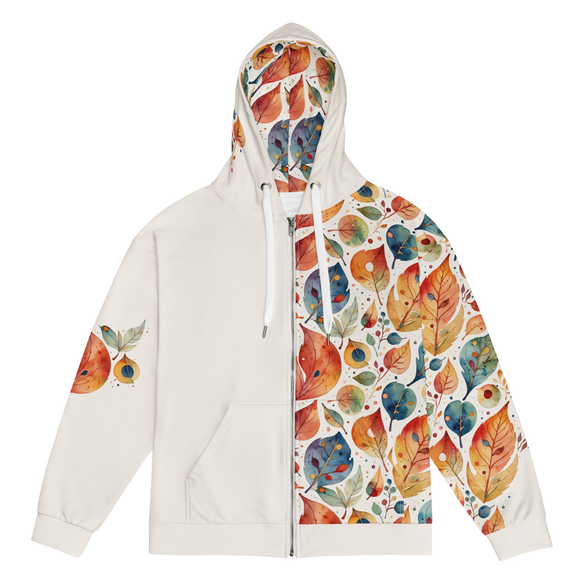 The "Autumn Blaze" Eco-Hoodie features a minimalist, all-over print of colorful autumn leaves inspired by Wassily Kandinsky’s abstract style. Bold shapes and vivid hues—fiery reds, golden yellows, and deep oranges—are arranged in a flowing, harmonious design, blending geometry and nature. Crafted from sustainable materials, this eco-friendly hoodie offers a sleek, artistic look while keeping you cozy and conscious of the planet. Meet the zip hoodie—a must-have for everyday wear. Crafted from 95% recycled polyester, it combines sustainability with style. Soft both inside and out, this unisex hoodie offers a relaxed fit with drop shoulders. Plus, it’s designed to last, keeping you cozy and fashionable for years to come.