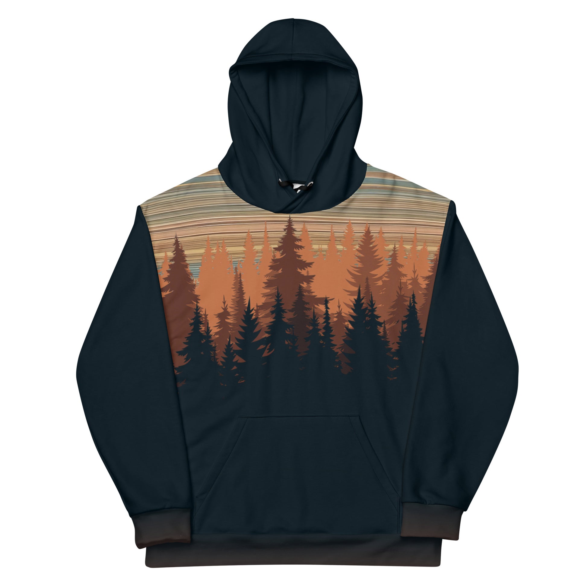 Introducing 'Fire Firs'—where autumnal hues meet the warmth of sunset in this captivating all-over print hoodie, featuring a striking pine tree line adorned in fiery colors, igniting the spirit of adventure and embracing the beauty of fall. This comfy unisex hoodie has a soft outside with a vibrant print and an even softer brushed fleece inside. The hoodie has a relaxed fit, and it’s perfect for wrapping yourself into on a chilly evening.
