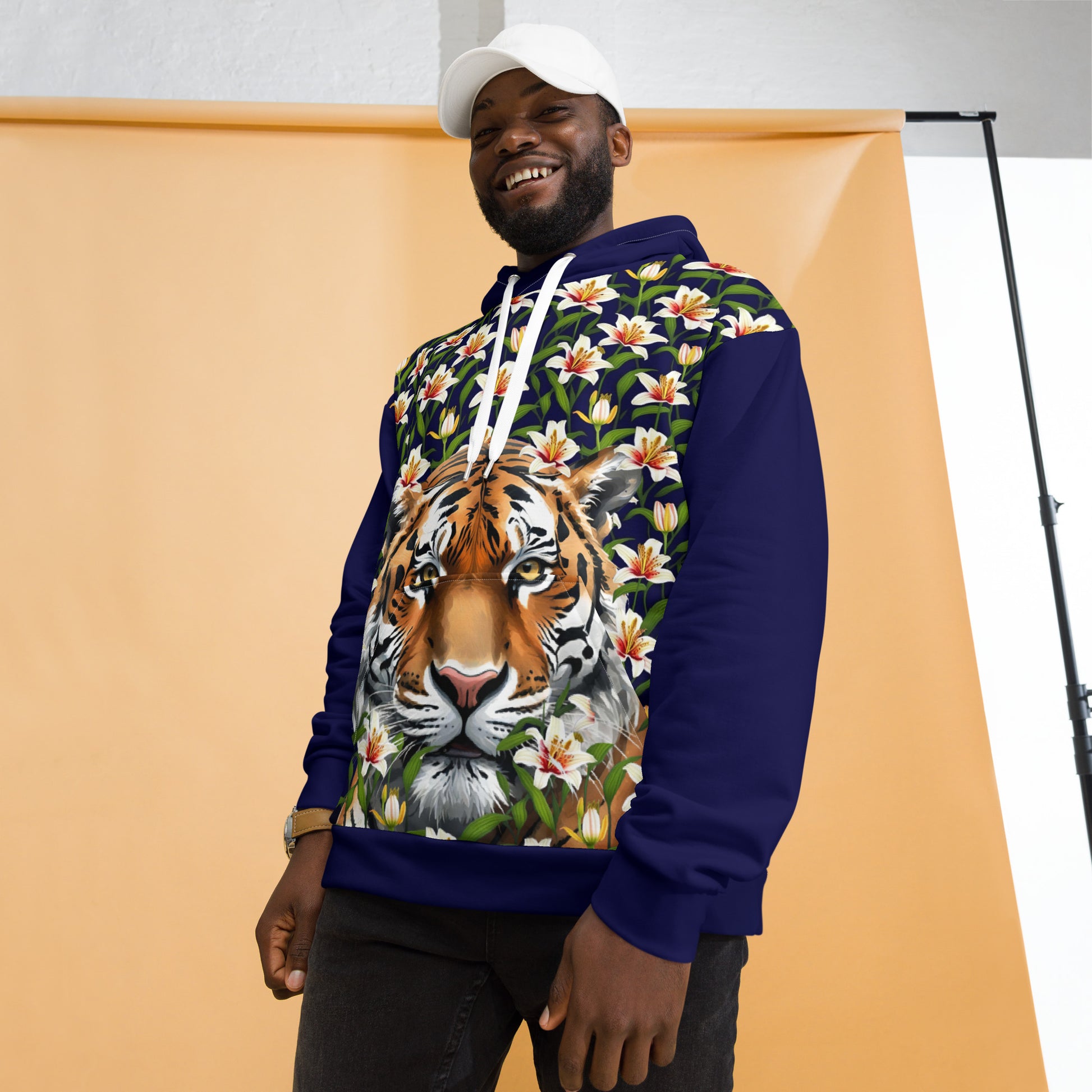 Introducing the "Tiger Lily" hoodie, where the fierce presence of a prowling tiger in a lush jungle adorned with vibrant lilies creates an all-over print masterpiece that encapsulates the raw beauty and untamed allure of the wilderness. This comfy unisex hoodie has a soft outside with a vibrant print and an even softer brushed fleece inside. The hoodie has a relaxed fit, and it’s perfect for wrapping yourself into on a chilly evening.